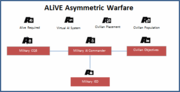 Setting up ALiVE to run in Asymmetric mode is done in the same way as conventional ops and as with all ALiVE scenarios it is designed to be modular and flexible. As a minimum the mission will need ALiVE (Required), the Virtual AI System and a Military AI Commander set to Asymmetric synced to a Military Placement Module (Mil or Civ), ideally within a set TAOR. To enhance immersion, it is recommended to sync both Military IED and Military CQB to the AI Commander module. For the full experience, add both ALiVE Civilian modules - civilians will be used (and abused) by insurgents for various nefarious tasks. The full module requirements are in the table below.